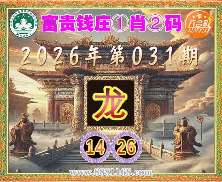 031期:『富贵钱庄』 🍖①肖②码🍖【】【14.26】开:龙26准上榜高手