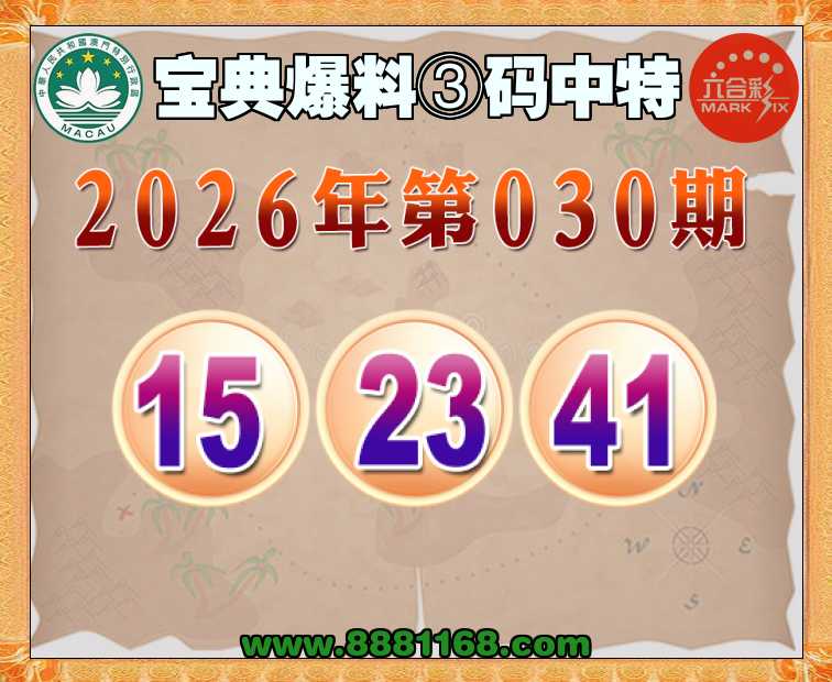 030期:【宝典爆料】 ♣️③码中特♣️【15.23.41】开:41准上榜高手
