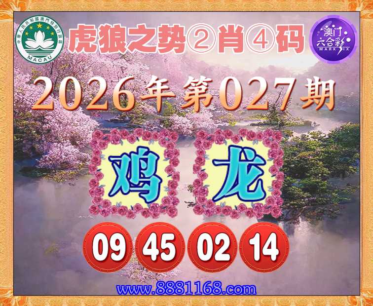 027期:【虎狼之势】 ☝️②肖④码☝️【龙】【09.45.02.14】开:鸡45准上榜高手